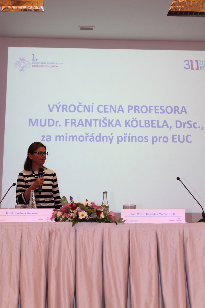V polovině programu nastala slavnostní chvíle, předání Ceny profesora MUDr. Františka Kölbela za mimořádný přínos v oblasti zdravotnictví EUC. Byli představeni nominovaní pracovníci zdravotnických zařízení EUC a vyhlášen vítěz - MUDr. Bohumil Dudešek z nemocnice Atlas ve Zlíně. Předání ceny se zúčastnila paní Kölbelová, manželka pana profesora a syn František Kölbel mladší. Vítězi gratulujeme!