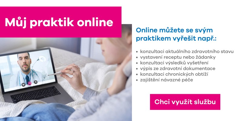 • Služba Můj praktik online - pro registrovaného pacienta zdarma (vyšetření probíhá prostřednictvím chatu/ videochatu)